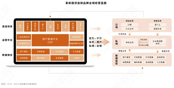進一步來看,國貨連鎖餐飲品牌需加強場景洞察能力,主要體現(xiàn)在客戶分層和客戶運營場景提煉上;餐飲行業(yè)對線下觸點強管控,天然具有將線下客戶向線上遷移的優(yōu)勢,因此善于用戶運營;國貨餐飲品牌在數(shù)據(jù)驅(qū)動思維和數(shù)據(jù)反饋閉環(huán)的建立上還有較大的提升空間。