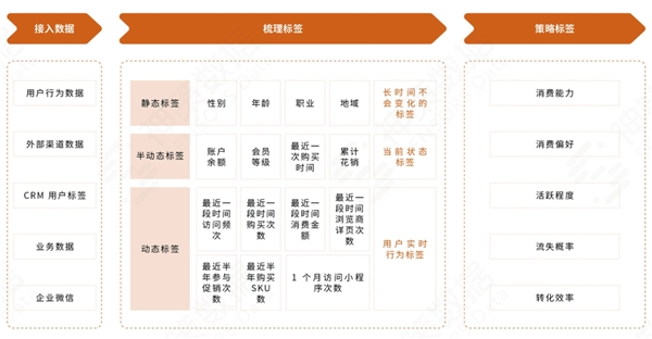 4、消費者全生命周期運營的基礎(chǔ)是構(gòu)建動靜結(jié)合的全域會員用戶標簽體系,顆粒度越細,越容易產(chǎn)生更好的落地效果。