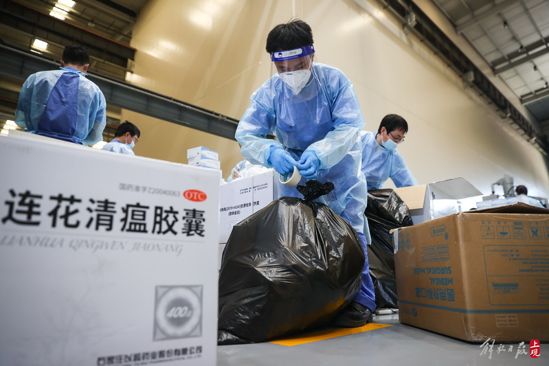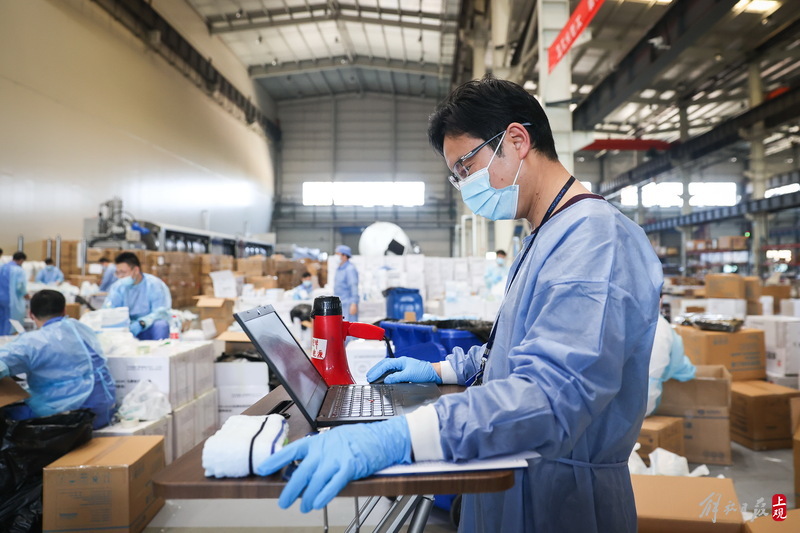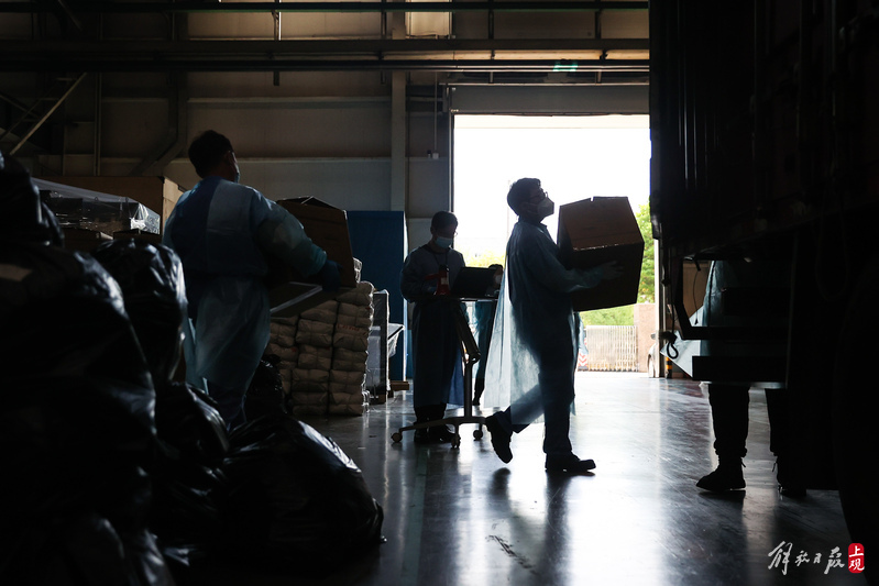 為不增加基層負(fù)擔(dān),寶山區(qū)啟用7個分揀點(diǎn)對應(yīng)13個街鎮(zhèn)園區(qū),由招募來的企業(yè)職工及志愿者流水線作業(yè),對物資開展卸貨、分裝。