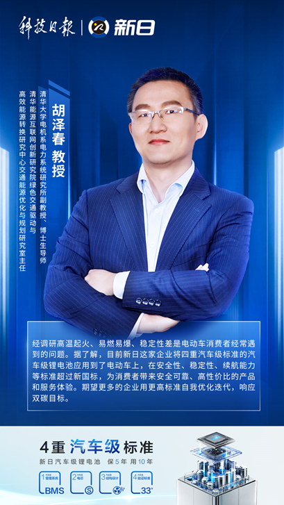 新日汽車(chē)級(jí)鋰電池的硬核實(shí)力,不僅經(jīng)過(guò)了實(shí)驗(yàn)室的嚴(yán)苛檢驗(yàn),也獲得了清華大學(xué)電機(jī)系電力系統(tǒng)研究所教授、博士生導(dǎo)師胡澤春教授的證言,他認(rèn)為具備“4重汽車(chē)級(jí)標(biāo)準(zhǔn)”的汽車(chē)級(jí)鋰電池應(yīng)用到電動(dòng)車(chē)上,在安全性、穩(wěn)定性、續(xù)航能力等方面均超過(guò)新國(guó)標(biāo)。