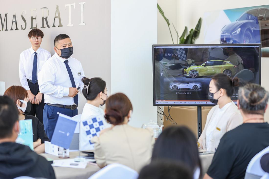 活動(dòng)開場(chǎng),瑪莎拉蒂銷售內(nèi)訓(xùn)師帶領(lǐng)大家品鑒瑪莎拉蒂新款車型,體驗(yàn)手工工藝精心雕琢帶來的至臻享受。在傳奇三叉戟之中,駕馭激情與風(fēng)范。