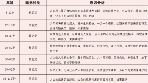 據(jù)了解,這8種覺囊括從新生到暮年的8個階段,每個階段根據(jù)人的身體發(fā)育需求、身體特征,結(jié)合所處年齡階段、社會環(huán)境等因素,來選擇不同的床墊,進而滿足人在每個階段好好睡覺的需求。