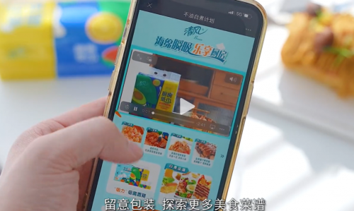 不僅產(chǎn)品去油實力能打,清風還推出產(chǎn)品伴生增值服務(wù)平臺——不油自煮計劃,大家只需“一掃”產(chǎn)品包裝二維碼即可獲得自煮教程學做菜,解除下廚困擾的同時,輕松享受自煮的愉悅。