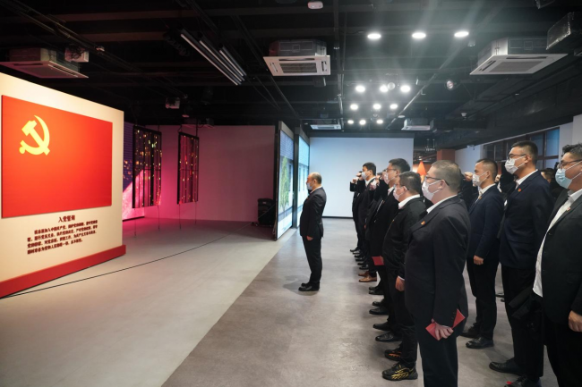 在中共蘇州獨立支部舊址,黨員們走過“燃血青春”中共蘇州獨立支部史跡陳列展示區(qū)、“青春我行”實踐活動體驗區(qū)、“青春劇場”多功能廳,通過聆聽革命先烈的光輝事跡、沉浸式體驗革命年代的艱苦歷程,系統(tǒng)回顧了中共蘇州獨立支部的創(chuàng)建背景、發(fā)展過程及影響意義,深刻感悟中共蘇州獨立支部的發(fā)展史、革命史和奮斗史,在恢宏磅礴的歷史畫卷中感悟著共產(chǎn)黨人堅定的理想信念。隨后,在“青春誓言”宣誓區(qū),全體黨員在牛春雷的帶領(lǐng)下面對黨旗莊重宣誓,重溫入黨誓詞,切實用紅色文化滋養(yǎng)初心、淬煉品行。