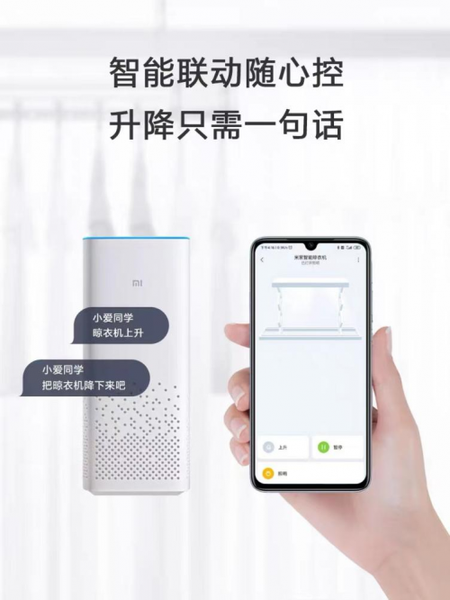 傳統(tǒng)式晾衣架費力又費時,米家智能晾衣機(jī)不僅能夠解放雙手,讓晾衣輕松又有趣。在操控上既可以使用無線遙控器來實現(xiàn)晾衣機(jī)的升、降、照明,還可以使用米家App智能控制與小愛語音控制,通過手機(jī)即可實現(xiàn)升、降、暫停、照明等操作。米家是智能互聯(lián)的時代弄潮兒,晾衣機(jī)可以隨心聯(lián)動米家平臺智能家居,洗衣機(jī)洗好,晾衣機(jī)就已經(jīng)就位。懂你,越來越懂你。