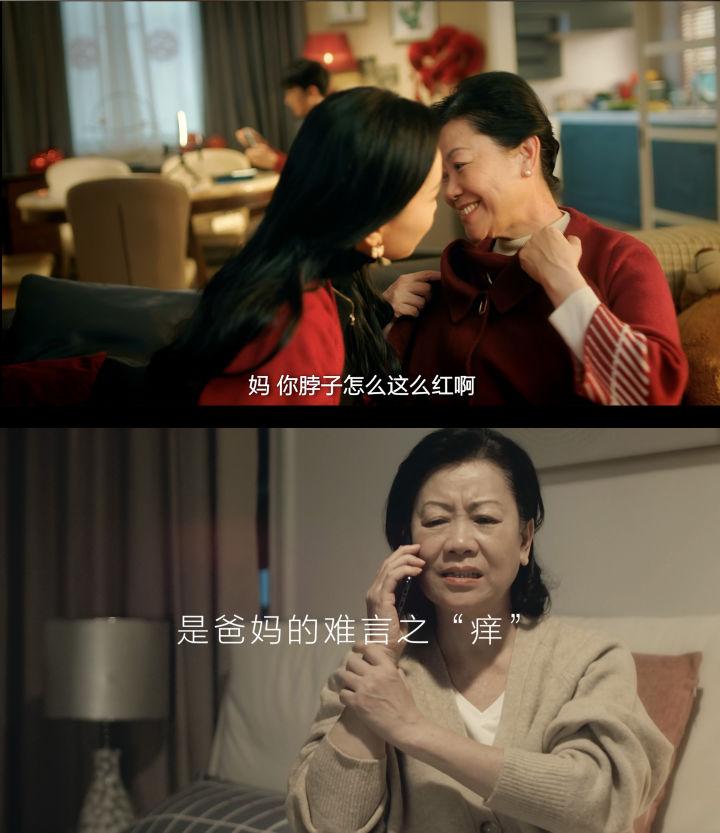 就像視頻中爸媽的皮膚瘙癢問(wèn)題,一方面父母會(huì)以為是小問(wèn)題或個(gè)人隱私,另一方面又不想兒女擔(dān)心,從而選擇默默忍受瘙癢的困擾,明明已經(jīng)影響生活,卻難言之“癢”、報(bào)喜不報(bào)憂。