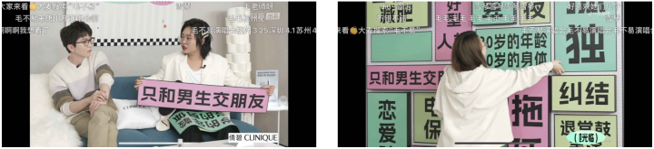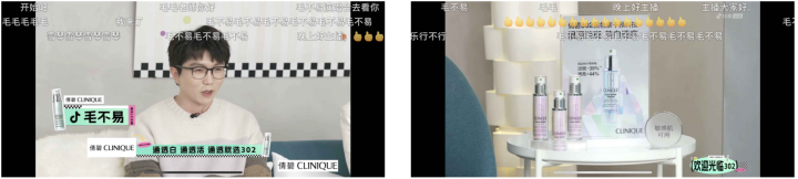 經(jīng)過前期的聲量積累,倩碧在直播環(huán)節(jié)中更為聚焦于將創(chuàng)新綜藝形式與品牌宣傳結(jié)合,通過片頭片尾廣告片、桌面產(chǎn)品擺放、嘉賓創(chuàng)意口播等形式植入品牌和產(chǎn)品形象。