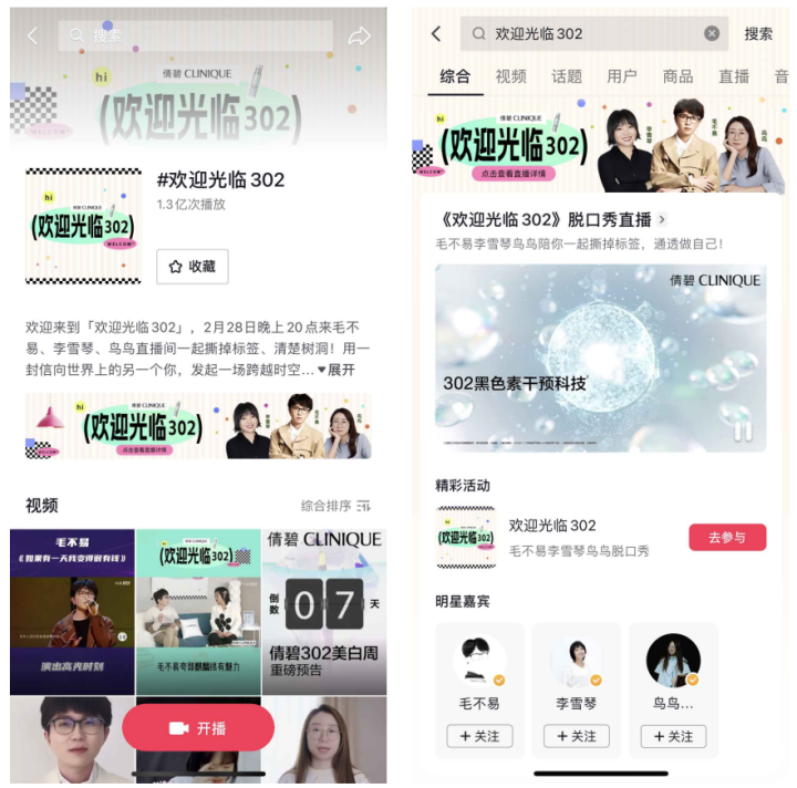 2月28日,由“通透白,通透活”的美白淡斑專家倩碧獨家冠名的抖音綜藝《歡迎光臨302》上線。