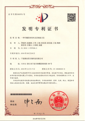 國(guó)家發(fā)明專利證書-肽素乳固體飲料及其制備方法