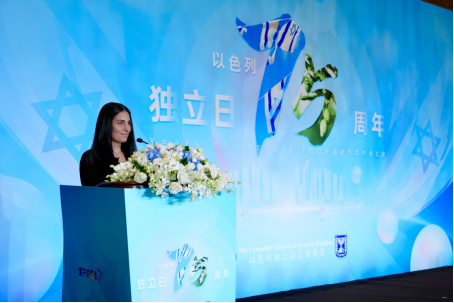 2023年是中國和以色列正式建交31周年,也是以色列建國75周年。5月10日,以色列駐滬總領(lǐng)事館主辦的“以色列建國成立75周年暨海法和上海建立友城30周年” 慶典活動在上海舉行。以色列駐滬總領(lǐng)事白樂濰(Ravit Baer)、副總領(lǐng)事洪以檀(Eytan Halon)、上海市副市長華源、上海市人大外事委員會副主任委員王治平、上海市政協(xié)科技和教育委員會副主任潘旭山、上海市外辦副主任周亞軍等領(lǐng)導(dǎo)及30國駐滬外交官們出席活動。洪以檀擔(dān)任主持。