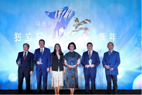 活動現(xiàn)場,上海兒童醫(yī)學(xué)中心SDR手術(shù)中心主任肖波獲得“促進(jìn)中以醫(yī)療技術(shù)交流”杰出貢獻(xiàn)獎,上海猶太難民紀(jì)念館館長陳儉獲得“致力于上海猶太歷史保護(hù)”杰出貢獻(xiàn)獎,上海金星舞蹈團(tuán)藝術(shù)總監(jiān)金星獲得“促進(jìn)中以藝術(shù)文化交流”杰出貢獻(xiàn)獎,上海鉆石交易所總裁林強(qiáng)獲得“促進(jìn)中以商貿(mào)與文化交流”杰出貢獻(xiàn)獎,南京大學(xué)猶太文化研究所所長徐新獲得“致力于猶太文化研究與中以教育交流”杰出貢獻(xiàn)獎,白樂濰為獲獎嘉賓頒獎。這也是以色列總領(lǐng)事館建館以來,首次向中國人授予此榮譽(yù)。