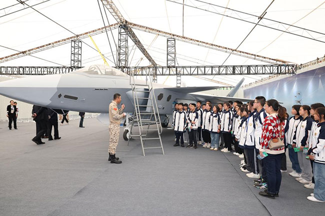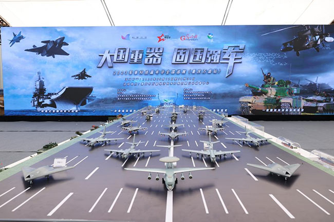 輝煌歷程展區(qū)以時間主線,將我國軍事科技領域的重要任務和重大事件,形成時空長廊,再現(xiàn)“大閱兵”的恢宏場景;陸戰(zhàn)驕子展區(qū)則是展示陸軍現(xiàn)代化建設成果的重要展區(qū),各型1:1比例的裝備模型,讓人們深刻體會到中國陸軍裝備的壯大;劍指深藍展區(qū)聚焦海軍強大艦艇裝備,各型號軍艦和先進武器系統(tǒng)的展示讓人們感受到海軍走向深藍的勇氣;藍天利刃展區(qū)則展示空軍先進武器和戰(zhàn)機,各型號戰(zhàn)機和導彈的專業(yè)介紹讓人們體驗到空軍的迅猛發(fā)展;鳴嘯長空展區(qū)則是以“兩彈一星”為主力展品,并結合導彈發(fā)射車、空天一體打擊體系等內容,展示我國戰(zhàn)略打擊力量;深空探秘展區(qū)則是展示我國太空事業(yè)發(fā)展成果的重要展區(qū),各類衛(wèi)星、火箭、空間站的展示,讓人們感受到中國太空事業(yè)的高速發(fā)展。