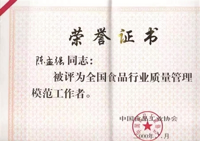 1987年,陳孟強參與起草了《保國際金牌奪國際金獎》的專題報告,并在全國輕工行業(yè)工作會議上進行了匯報。