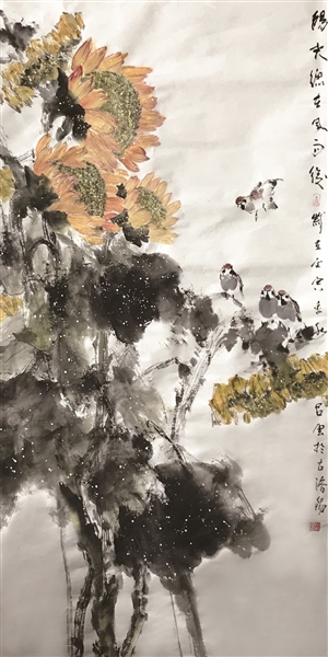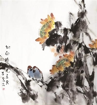 《心向陽光》國畫 68×68cm 2022年