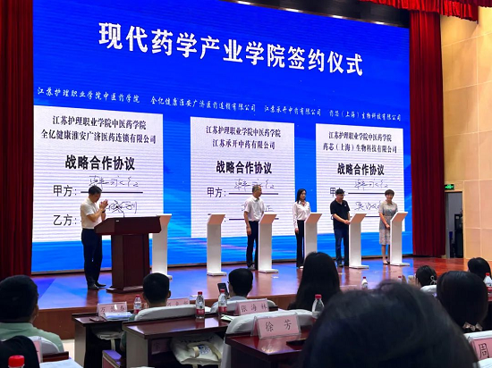 會上,全億健康淮安分部與江蘇護(hù)理職業(yè)學(xué)院中醫(yī)藥學(xué)院簽署戰(zhàn)略合作協(xié)議,攜手共建現(xiàn)代藥學(xué)產(chǎn)業(yè)學(xué)院。