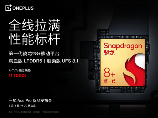 一加 Ace Pro搭載第一代驍龍?8+移動平臺,驍龍8+采用全球領(lǐng)先的臺積電4nm制程工藝,相較上一代CPU和 GPU性能提升10%,同時功耗降低30%,能效比得到顯著提升。驍龍8+搭載第7代高通 AI引擎,AI能效提升20%,釋放更強(qiáng)勁的AI處理能力。一加 Ace Pro還搭載滿血版LPDDR5、超頻版UFS3.1,與驍龍8+協(xié)同帶來更流暢的使用體驗。憑借強(qiáng)悍的性能表現(xiàn),一加 Ace Pro在跑分軟件AnTuTu上跑出了1141383的高分。