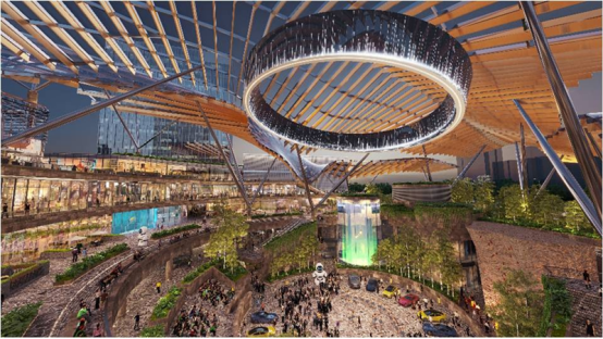“上海國際新文創(chuàng)電競中心”設(shè)置了全球首個(gè)雙電競場館,主場館是華東首座國際標(biāo)準(zhǔn)的電競場館,面積達(dá)15,000㎡,擁有3,000個(gè)座位,除了舉辦電競職業(yè)聯(lián)賽外,還可承辦各類明星演唱會、見面會、綜藝晚會等。“EDG合創(chuàng)汽車英雄聯(lián)盟LPL主場賽館”面積6,000㎡,可容納1,000座位,未來必將成為全球EDG粉絲的朝圣地,同時(shí)也將聯(lián)合專業(yè)演藝公司,打造沉浸式劇場、LIVEHOUSE功能,全年活動無間斷!此外,上海超極合生匯項(xiàng)目還擁有上海最大下沉式廣場“電競搖滾觀賽區(qū)”,巨型的環(huán)繞型媒體環(huán)作為中心廣場的精神堡壘,實(shí)時(shí)為玩家?guī)砻恳粋€(gè)激動人心的游戲時(shí)刻。