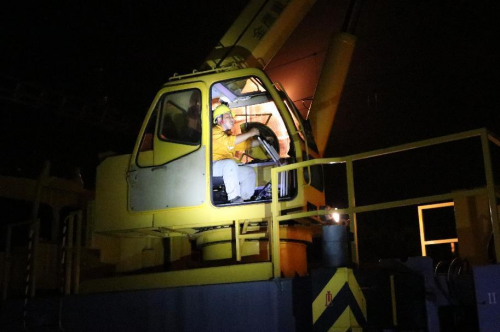 2022年9月22日凌晨0點(diǎn)33分,一聲“開工作業(yè)”嘹亮的口號(hào)劃破了??诩澎o的夜空,作業(yè)人員根據(jù)分工有條不絮的開始忙碌起來。1點(diǎn)35分隨著吊車吊臂平穩(wěn)落下,一組長(zhǎng)23.03米的橫梁穩(wěn)穩(wěn)的落在鋼柱上,作業(yè)人員迅速對(duì)位、連接、緊固、落臂……熟練的操作一氣呵成,順利精準(zhǔn)完成了海南環(huán)島高鐵首次硬橫梁更換作業(yè)。