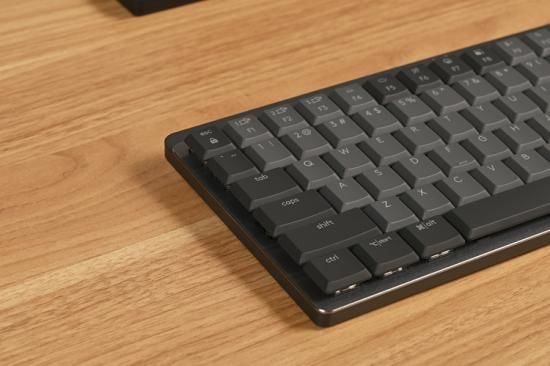 首先是大家最好奇的一點(diǎn):它憑什么沒(méi)有聲音?羅技MX Mechanical系列采用的是機(jī)械矮軸,矮軸的好處就是在保留了機(jī)械鍵盤反饋感的同時(shí),盡可能地減少噪音。在羅技官方支持的青紅茶軸內(nèi),你只要選擇了茶軸和紅軸,打字時(shí)的噪聲都是在一個(gè)非??煽氐姆秶鷥?nèi)的。輔以弧面雙色鍵帽和鋁制金屬磨砂面板,質(zhì)感很突出,商務(wù)感拉滿。