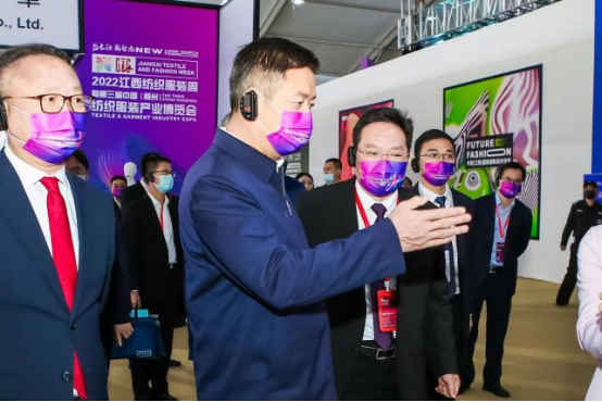 江西省委常委、副省長任珠峰宣布2022江西紡織服裝周暨江西(贛州)紡織服裝產業(yè)博覽會開幕,并與各領導、嘉賓共同開啟本次活動的華彩大幕