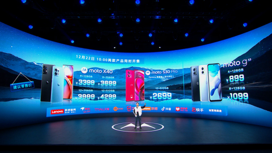 2022年12月15日19時30分,聯(lián)想moto召開了以“心無畏,赴山海”為主題的新品發(fā)布會,正式發(fā)布了moto X40、moto G53和moto S30 Pro潘通限量版(非凡洋紅)三款新品。其中,“手機(jī)中的SUV”moto X40,首發(fā)價3399元起;“千元5G全擊手”moto G53,首發(fā)價899元起;而moto S30 Pro潘通限量版(非凡洋紅),首發(fā)價則是2699元起。