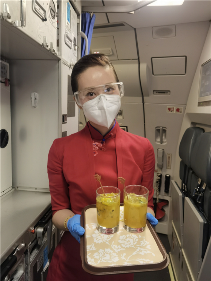 在客艙內(nèi),旅客可品嘗春運(yùn)期間特別上線的冷泡果茶飲品