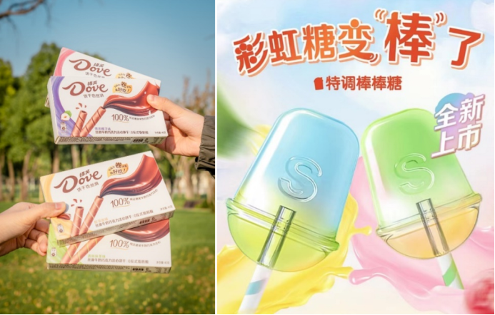 德芙脆卷餅干紙質(zhì)包裝、彩虹?糖紙棒棒棒糖(左圖來源:上海吃喝玩樂公司)
