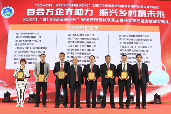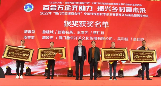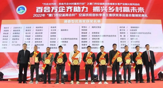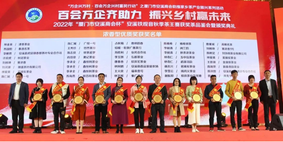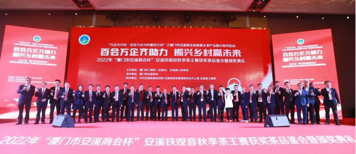 2月24日,由廈門市工商聯(lián)(總商會)、安溪縣人民政府主辦,廈門市安溪商會承辦,中共安溪縣委統(tǒng)戰(zhàn)部、安溪縣茶業(yè)管理委員會辦公室、安溪縣工商聯(lián)協(xié)辦的2022年“廈門市安溪商會杯”安溪鐵觀音秋季茶王賽獲獎茶品鑒會暨頒獎典禮在廈門佰翔五通酒店盛大舉行。本次活動是為了進一步落實廈門市工商聯(lián)和安溪縣人民政府提出的“萬企興萬村·百會萬企興村富民行動”計劃——廈門市安溪商會助推家鄉(xiāng)茶產(chǎn)業(yè)振興活動,也是“廈門企業(yè)家日”配套活動之一。