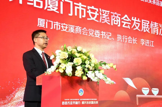 安溪縣縣長劉永強在講話中表示,20多年來,廈門市安溪商會團結(jié)帶領(lǐng)在廈鄉(xiāng)親弘揚愛拼敢贏、靠自己的骨頭長肉的精神,拼搏商海,盡顯風采,在廈門特區(qū)留下了耀眼的茶鄉(xiāng)印記。難能可貴的是商會多年來傾心傾力,支持推動家鄉(xiāng)茶產(chǎn)業(yè)發(fā)展,舉辦“廈門市安溪商會杯”茶王賽已成為規(guī)格最高的安溪鐵觀音茶葉賽事之一,激勵廣大茶農(nóng)茶人傳承匠心、用心制茶,提升安溪鐵觀音的美譽度和影響力。安溪是世界名茶鐵觀音發(fā)源地,中國烏龍茶之鄉(xiāng),近年來,安溪縣委縣政府緊扣三茶統(tǒng)籌,全面推進茶產(chǎn)業(yè)高質(zhì)量發(fā)展。得益于茶產(chǎn)業(yè)的蓬勃發(fā)展,安溪走上了高質(zhì)量發(fā)展快車道,縣域綜合實力躍升至全國百強縣第53位,投資潛力第11位,已成為高新技術(shù)產(chǎn)業(yè)高地、宜居宜業(yè)的發(fā)展福地。今年,安溪縣委縣政府錨定GDP突破千億,緊扣6個工作抓手,奮力實施七大行動,加快全面建設(shè)具有茶鄉(xiāng)特色的現(xiàn)代化中等城市。真誠期待廈門市安溪商會和廣大鄉(xiāng)賢以各種方式參與其中,同時竭誠歡迎各界朋友到安溪品茗觀光、投資興業(yè)、共贏未來。