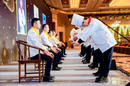 麥金地是一家先建立文化體系再建立管理體系的公司,以尊師重道、廚藝傳承傳承為宗旨創(chuàng)立“廚藝促進(jìn)會”,以“仁義禮智信”儒家文化為底蘊(yùn)組建【麥金地精忠俱樂部】管理團(tuán)隊(duì),是麥金地集團(tuán)一貫堅(jiān)持的管理措施。會議第一章,舉行了廚藝促進(jìn)會拜師儀式和精忠俱樂部入會儀式。
