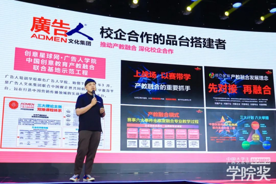 創(chuàng)意星球董事、副總經(jīng)理李春生先生題為《做校企合作的提燈人和馬車夫》的演講。李春生先生詳細(xì)說明廣告人文化集團(tuán)的歷程、內(nèi)容生態(tài)圈與平臺(tái)戰(zhàn)略布局,表示:“廣告人文化集團(tuán)發(fā)展至今,積累了深厚的社會(huì)資源。作為熱愛教育事業(yè)的追夢人,在各高校紛紛積極探索實(shí)踐教學(xué)、教育改革之路時(shí),廣告人文化集團(tuán)決心盡自己所能幫助高校在實(shí)踐教學(xué)的道路上走得更快?!?br />