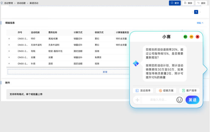 賽博威新一代多元營銷費用管理,是TPM也不止是TPM,通過靈活配置,滿足企業(yè)營銷數(shù)字化全鏈路個性化需求。應用最新AI技術應用,減少手工報表,讓人機溝通更順暢,讓業(yè)務人員輕松、快速、準確地獲取所需信息。