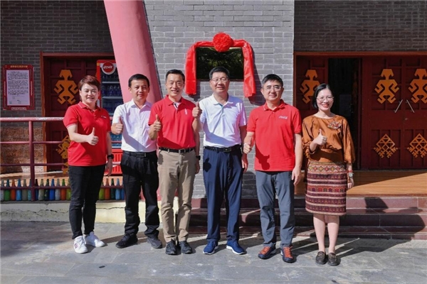 毛道鄉(xiāng)“消碳莊園”揭牌,從左到右分別為:海南太古可口可樂(lè)總經(jīng)理宋麗華、五指山市人民政府黨組成員、副市長(zhǎng)高亮、太古可口可樂(lè)中國(guó)區(qū)首席執(zhí)行官黨建、中國(guó)綠化基金會(huì)副主席兼秘書長(zhǎng)陳蓬、可口可樂(lè)大中華及蒙古區(qū)副總裁張建弢、毛道鄉(xiāng)黨委書記黃凌鳳