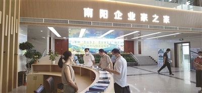 近日,調(diào)研組走進(jìn)南陽市企業(yè)服務(wù)中心。這座毗鄰南陽行政審批服務(wù)中心的建筑物恢弘大氣、設(shè)施完備、環(huán)境溫馨。南陽市企業(yè)服務(wù)中心建筑面積1.2萬平方米,是中部地區(qū)最大的企業(yè)服務(wù)實(shí)體大廳。該中心以“全賦能、心服務(wù)”為核心理念,設(shè)訴求響應(yīng)、中介服務(wù)、企業(yè)家素質(zhì)提升和精品展示四大功能區(qū),通過“一網(wǎng)六部一講堂”為主架構(gòu)的線上線下聯(lián)動(dòng)機(jī)制,為企業(yè)提供全生命周期呵護(hù)、全鏈條體系支持、全需求要素保障、全方位素質(zhì)提升、全市場(chǎng)主體覆蓋、全流程精準(zhǔn)服務(wù)的六全一站式服務(wù)。
