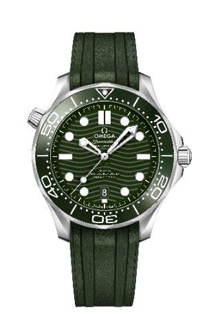 這款海馬系列300米潛水表搭配綠色波紋表盤。表殼為42毫米,采用精鋼材質打造,經拋光和拉絲處理,搭配單向旋轉拋光綠色陶瓷表圈,飾以由“大明火”工藝制成的白色琺瑯潛水刻度,12點位設有覆以Super-LumiNova夜光涂層的圓點,在暗黑環(huán)境中呈現(xiàn)以綠色效果。旋入式表背經拋光和拉絲工藝打磨,飾有波紋邊緣,透過藍寶石玻璃表背,可以欣賞到歐米茄8800至臻天文臺機芯的運轉美態(tài)。對于喜愛運動風格的人士而言,腕表搭配一體式綠色橡膠表帶,更便于運動佩戴。