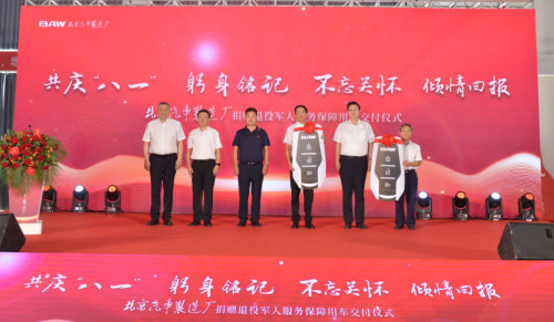 7月28日,北京汽車制造廠在青島總部基地隆重舉行“共慶‘八一’,躬身銘記,不忘關(guān)懷,傾情回報(bào)”捐贈(zèng)退伍軍人服務(wù)保障用車交付儀式,以實(shí)際行動(dòng)做出擁軍表率,為建軍96周年獻(xiàn)禮。原空軍指揮學(xué)院副院長(zhǎng)朱和平少將、中國(guó)退役軍人就業(yè)創(chuàng)業(yè)服務(wù)促進(jìn)會(huì)理事長(zhǎng)王義少將、中國(guó)退役軍人就業(yè)創(chuàng)業(yè)服務(wù)促進(jìn)會(huì)常務(wù)副理事長(zhǎng)林崗少將、中國(guó)汽車工業(yè)協(xié)會(huì)常務(wù)副會(huì)長(zhǎng)兼秘書長(zhǎng)付炳鋒、山東省退役軍人事務(wù)廳副廳長(zhǎng)劉興磊以及各界領(lǐng)導(dǎo)嘉賓共計(jì)200余人出席了本次儀式,北京汽車制造廠董事長(zhǎng)陸付軍在現(xiàn)場(chǎng)遞交了此次捐贈(zèng)的BAW卡路里皮卡新車鑰匙。